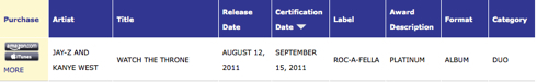 Nearly two months after its release, Jay-Z and Kanye West’s Watch The Throne are now planking on a million copies.
