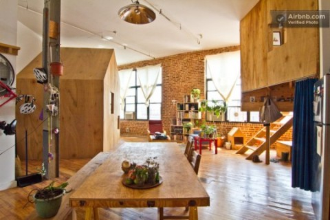A Cabin in a Loft in Brooklyn is a two-bedroom loft in Bushwick, Brooklyn. The cabin is available for short-term rental as an alternative to hotels and hostels to those seeking a more local experience of New York.